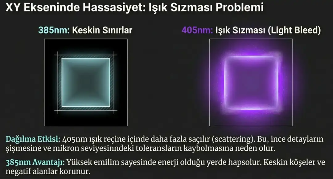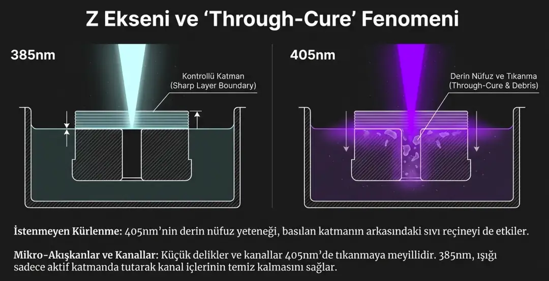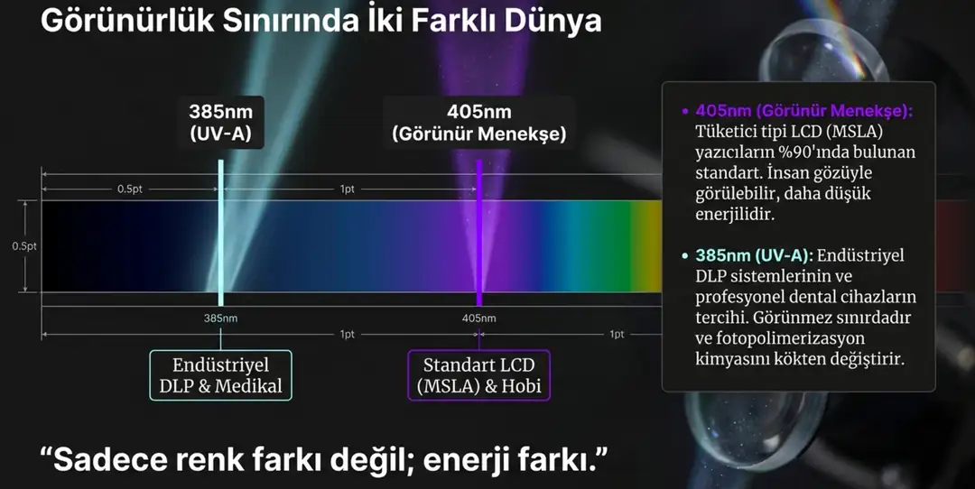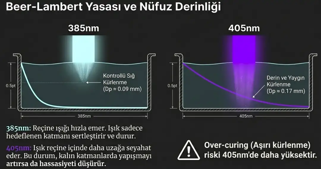 Bu fark, reçine içindeki fotopolimerizasyon sürecini kökten değiştirir.