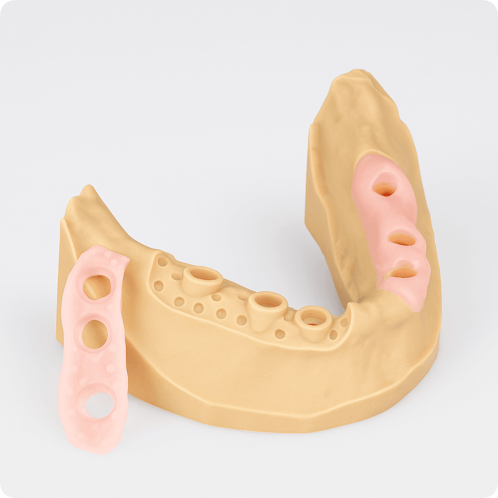 İyi bir gingiva reçinesi, doğal diş eti dokusuna en yakın renk, doku ve esneklik değerlerine sahip olmalıdır. Bu hem görsel olarak gerçekçi bir model üretimini sağlar hem de klinik uygulamalarda doğal yumuşak doku davranışını taklit eder. Özellikle implant üstü modellerde, bu gerçekçilik hekim ve teknisyen arasındaki iletişimi güçlendirir.